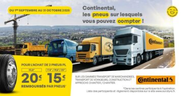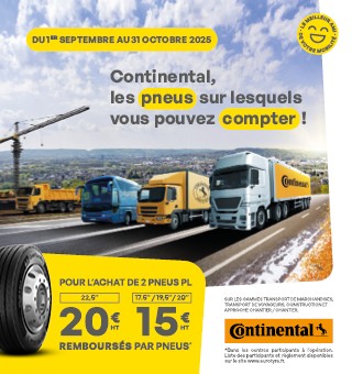 Promotion pneus poids lourds Continental Du 1er septembre au 31 octobre 2025, pour l’achat de 2…