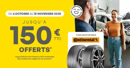 Promotion pour l’achat de pneus Continental 2025 Du 6 octobre au 15 novembre 2025, profitez de l’offre Continental jusqu’à 150€ offerts* […]