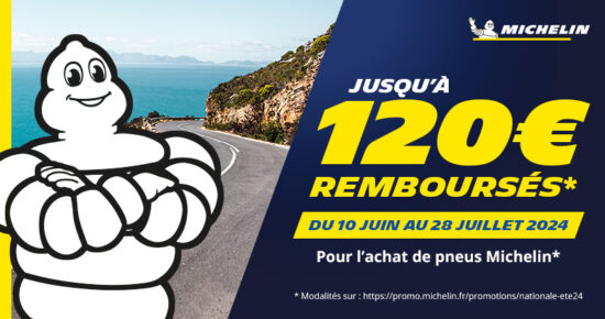 Du 10 juin au 28 juillet 2024, jusqu’à 120€ remboursés pour l’achat de pneus Michelin Eté, Hiver ou CrossClimate. Remboursement […]
