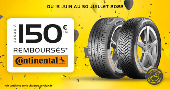 Du 13 Juin au 30 Juillet 2022, jusqu’à 150€ remboursés* pour l’achat de pneumatiques de marque Continental été, hiver ou […]
